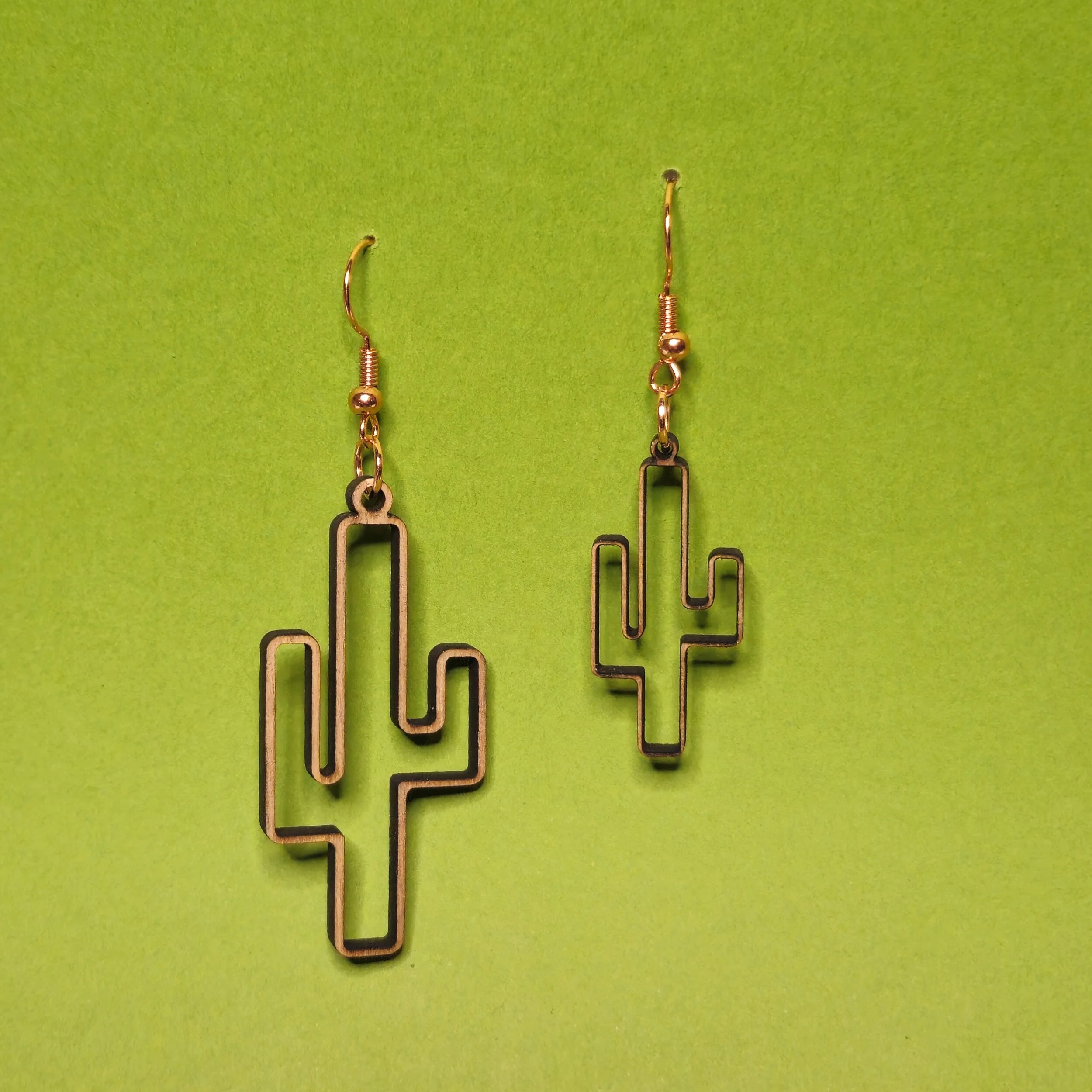 WOOD CACTUS OUTLINE EARRINGS